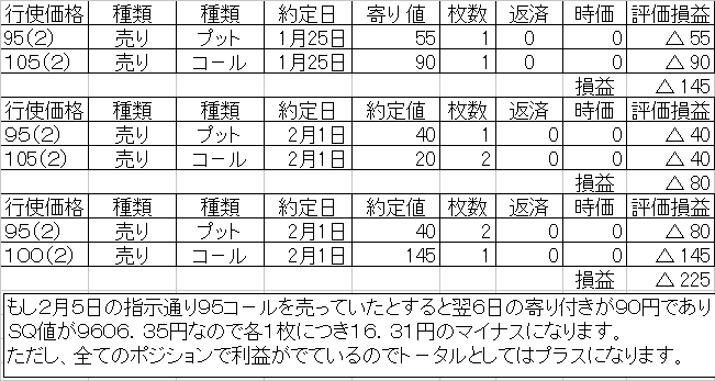 | 2月限のオプションの推奨ポジションは下記のように全てプラスでした。 |