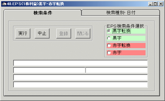 予想EPS(1株利益)が赤字(マイナス、0)から黒字(プラス)に転じた銘柄を検索します。