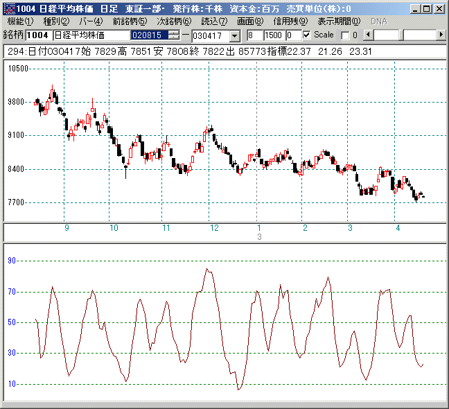 買いは30以下で下降から上昇に転じた場合。